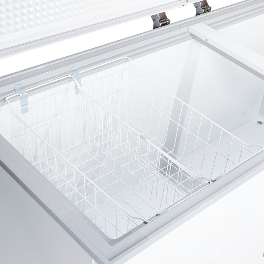 Phần thân tủ làm từ tôn sơn tĩnh điện/PCM chắc chắn, chống trầy xước, chống bám bẩn và dễ vệ sinh. Lòng tủ bằng hợp kim nhôm sơn tĩnh điện, có khả năng truyền nhiệt tốt, chống bám tuyết và giữ cho thực phẩm luôn trong môi trường sạch sẽ, an toàn.